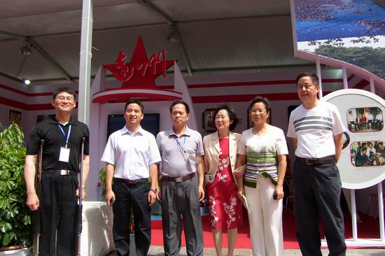 圖二:省殘聯(lián)黨組書記、理事長毛大付(左二),省殘聯(lián)副理事長丁二中(左一)、張建生(右一)、李紅(右三),省殘聯(lián)機(jī)關(guān)黨委書記、紀(jì)檢專員刁玉芳(右二)與達(dá)州市殘聯(lián)黨組書記、理事長(廖小云)在達(dá)州展區(qū)參觀