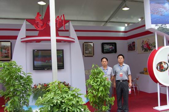圖三:達(dá)州市人民政府市長助理張照新(右)、達(dá)州市殘聯(lián)黨組書記、理事長廖小云(左)在達(dá)州館展區(qū)參觀