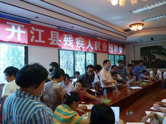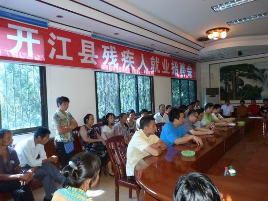 經(jīng)過(guò)一個(gè)多月的廣泛宣傳和精心準(zhǔn)備,7月18日,來(lái)自全縣各鄉(xiāng)鎮(zhèn)的65名下肢殘疾人和16名聾啞殘疾人來(lái)到招聘現(xiàn)場(chǎng)接受開(kāi)江縣殘聯(lián)與達(dá)州市瑋鑫首飾有限公司和達(dá)州市殘疾人就業(yè)服務(wù)部在縣殘聯(lián)舉行的現(xiàn)場(chǎng)招聘會(huì),達(dá)州市殘聯(lián)黨組成員、機(jī)關(guān)黨委書記楊文平,市殘聯(lián)副調(diào)研員劉慶福,市殘聯(lián)教育就業(yè)科長(zhǎng)方勇,縣殘聯(lián)機(jī)關(guān)全體干部職工,鄉(xiāng)鎮(zhèn)殘聯(lián)專干共100多人參加,會(huì)議由縣殘聯(lián)黨組書記、理事長(zhǎng)王莉華主持。會(huì)上,市殘聯(lián)機(jī)關(guān)黨委書記楊文平同志作了重要講話,他代表市殘聯(lián)感謝達(dá)州市瑋鑫首飾有限公司對(duì)殘疾人事業(yè)的支持和對(duì)殘疾人的關(guān)心,預(yù)祝該公司在開(kāi)江招聘取得圓滿成功,讓更多的殘疾人實(shí)現(xiàn)夢(mèng)寐以求就業(yè)愿望,為家庭減輕壓力,為社會(huì)減輕負(fù)擔(dān),展示自己的人生價(jià)值。