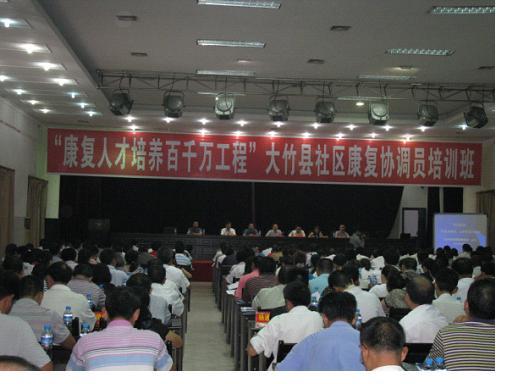 2011年7月21日至22日,大竹縣殘聯(lián)在大竹縣計生委會議室對全縣50個鄉(xiāng)鎮(zhèn)的殘聯(lián)專干、村(社區(qū))和縣殘聯(lián)的全體干部職工288名康復協(xié)調(diào)員,進行了康復專業(yè)知識培訓。市殘聯(lián)黨組成員、副理事長劉飛,市殘聯(lián)康復科長馮春義出席培訓會并做重要講話,大竹縣殘聯(lián)黨組書記、理事長徐仁文主持會議。