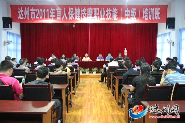 9月14日,在國際盲人節(jié)前夕(10月15日是國際盲人節(jié)),為給全市盲人朋友們一份特殊的禮物,由市殘聯(lián)舉辦的達(dá)州市2011年盲人保健按摩職業(yè)技能(中級)培訓(xùn)班在市四通職業(yè)技術(shù)培訓(xùn)學(xué)校正式開班。市殘聯(lián)黨組書記、理事長廖小云、機關(guān)黨委書記楊文平、副調(diào)研員劉慶福,市財政局社?瓶崎L李雄、副科長司先春,市職業(yè)技能鑒定中心周志恒,市四通職業(yè)技術(shù)培訓(xùn)學(xué)校校長張正東、市盲人協(xié)會主席劉建華出席了開班典禮。36名來自全市各縣(市、區(qū))的盲人學(xué)員將集中接受30天的職業(yè)技能培訓(xùn)。