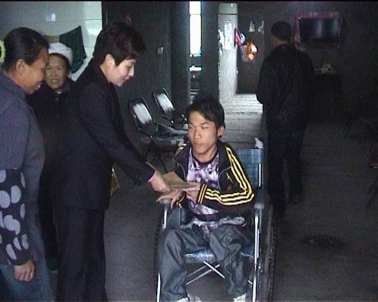 2011年10月24日下午,清溪鎮(zhèn)黨委書記胡元瑞、副鎮(zhèn)長顏懷海攜鎮(zhèn)殘聯(lián)、慈善、社會事務(wù)辦負(fù)責(zé)人等一行6人看望慰問了貧困殘疾人桂軍及家人。為他們送去了輪椅、棉被、衣服、大米、青油等慰問品和慰問金,把黨和政府的關(guān)懷及時地送到他家。殘疾人桂軍緊握尚有余溫的慰問金,不停地點頭言謝,眼眶里裝滿了感動的淚花。桂軍的父親激動地說這下我兒子可以坐在這個輪椅上,去趕個集 ,也讓他出去透透風(fēng)了。黨委書記胡元瑞親切地扶著坐在殘疾車上的桂軍說:“殘疾人也是社會的一份子,我們有責(zé)任扶弱濟(jì)困,希望你們鼓足生活的勇氣和信心,勇敢地面對生活,相信在在黨委、政府的關(guān)心下和優(yōu)惠政策的幫助下,你們的生活一定會越來越好!