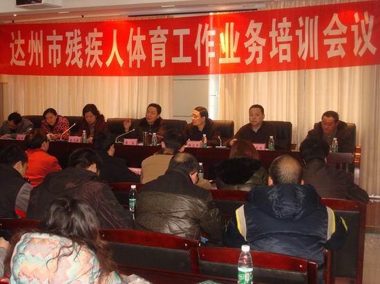 2月28日,全市殘疾人體育工作業(yè)務(wù)培訓(xùn)會議在宣漢縣隆重召開。達(dá)州市殘聯(lián)黨組成員、機(jī)關(guān)黨委書記楊文平,宣漢縣縣委常委、總工會主席李良,四川文理學(xué)院副教授楊紹月,達(dá)州市業(yè)余體校游泳教練李國權(quán)出席會議,各縣(市、區(qū))殘聯(lián)和宣漢縣體育局的負(fù)責(zé)人,以及各縣(市、區(qū))備戰(zhàn)市二屆殘運會的體育教練員共計50余人參加了會議。會議由達(dá)州市殘聯(lián)組宣科科長張文妮主持。