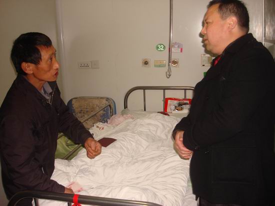 唐武兵理事長詳細向醫(yī)務(wù)人員和家長詢問了殘疾少年于學(xué)清的傷情和救治情況,并囑托于學(xué)清的父親于中禮,一定要盡好父親的職責,善待殘疾孩子,照顧和托養(yǎng)好于學(xué)清。同時,鼓勵他們要正確面對生活,勇敢面對困難,要以樂觀的態(tài)度樹立起生活的信心和勇氣。