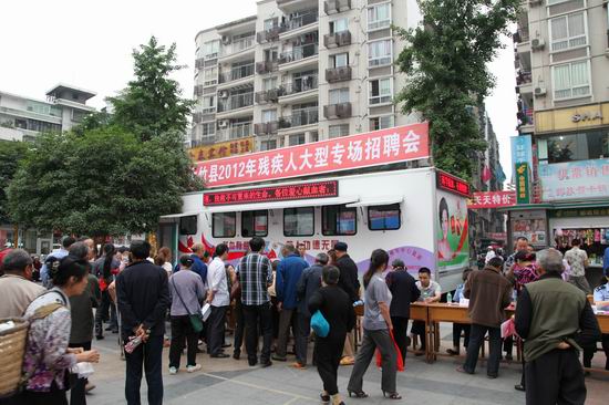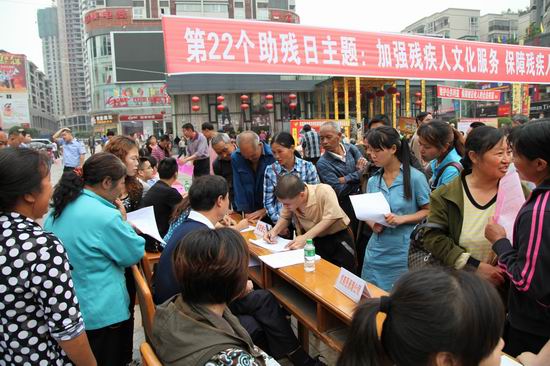 助殘日前夕,大竹縣在煌歌廣場(chǎng)成功舉辦了省、市、縣三級(jí)聯(lián)動(dòng)2012年殘疾人大型專場(chǎng)招聘會(huì),交警大隊(duì)、城管辦、環(huán)衛(wèi)所、福翔電子、升泰硅錳、明星機(jī)電、環(huán)州機(jī)電、成都恩佩瑞等10個(gè)參加招聘會(huì)的企事業(yè)單位共提供殘疾人就業(yè)崗位300余個(gè),當(dāng)天參加應(yīng)聘的各類殘疾人500余人,有50名殘疾人成功應(yīng)聘,有300余名殘疾人與用人單位達(dá)成用工意愿。