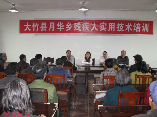 2013年4月24日,大竹縣月華鄉(xiāng)殘疾人實(shí)施技術(shù)培訓(xùn)班在月華鄉(xiāng)大會(huì)議室拉開(kāi)了序幕。鄉(xiāng)長(zhǎng)唐昌秀、分管領(lǐng)導(dǎo)和縣殘聯(lián)黨組書(shū)記理事長(zhǎng)徐仁文、黨組副書(shū)記副理事長(zhǎng)馮圣友及教就股的同志參加了參加此會(huì)。鄉(xiāng)上農(nóng)業(yè)、畜牧方面的專(zhuān)業(yè)技術(shù)人員,重點(diǎn)圍繞“大春育苗技術(shù)”、“無(wú)公害蔬菜肥料使用技術(shù)”、“養(yǎng)雞、養(yǎng)鴨、養(yǎng)豬實(shí)用技術(shù)”等知識(shí)進(jìn)行講解。培訓(xùn)中引用了大量的實(shí)例和數(shù)據(jù)對(duì)比,以多種圖片形勢(shì)幫助殘疾人對(duì)培訓(xùn)內(nèi)容進(jìn)行理解,培訓(xùn)受到82位殘疾人的歡迎。