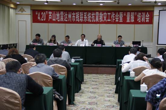 “4.20”蘆山地震全市殘聯(lián)系統(tǒng)抗震救災(zāi)工作會暨“量服”培訓(xùn)會5月6-8日在達(dá)州賓館成功召開。市殘聯(lián)全體黨組成員出席了會議,各縣(市、區(qū))殘聯(lián)理事長、分管“量服”工作的領(lǐng)導(dǎo)、“量服辦”負(fù)責(zé)人、殘疾人家庭無障礙改造業(yè)務(wù)負(fù)責(zé)人以及部分鄉(xiāng)鎮(zhèn)(街道)、村(社區(qū))“量服”業(yè)務(wù)骨干、市殘聯(lián)機(jī)關(guān)全體職工及下屬事業(yè)單位負(fù)責(zé)人共110余人參加了會議。會議還邀請了原市紀(jì)委常委李一明到會并授課。