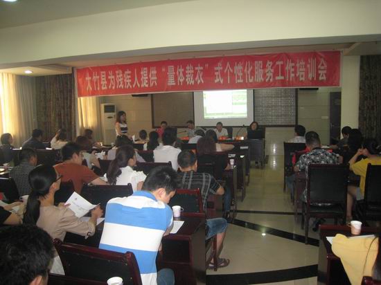 2013年5月23日大竹縣殘聯(lián)在福蓉城賓館召開了“量服”工作培訓會,全縣各鄉(xiāng)鎮(zhèn)殘聯(lián)理事長、“量服”辦工作人員、竹陽鎮(zhèn)9個社區(qū)、縣殘聯(lián)機關全體工作人員共計130余人參加了會議,會議由縣殘聯(lián)副理事長蔣敏同志主持。