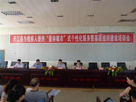 5月23日、24日,開(kāi)江縣為殘疾人提供“量體裁衣”式個(gè)性化服務(wù)培訓(xùn)會(huì)在縣職業(yè)中學(xué)校教學(xué)樓六樓報(bào)告廳召開(kāi)。會(huì)議的主要任務(wù)是:落實(shí)省、市殘聯(lián) “量服”工作的講話精神和省、市殘聯(lián)對(duì)量服工作業(yè)務(wù)的新要求、新任務(wù)。全縣20個(gè)鄉(xiāng)鎮(zhèn)殘聯(lián)理事長(zhǎng)、194個(gè)村22個(gè)社區(qū)專委、縣殘聯(lián)機(jī)關(guān)全體干部職工共250人參加了培訓(xùn)。會(huì)議由縣殘聯(lián)黨組書(shū)記、理事長(zhǎng)王莉華主持。