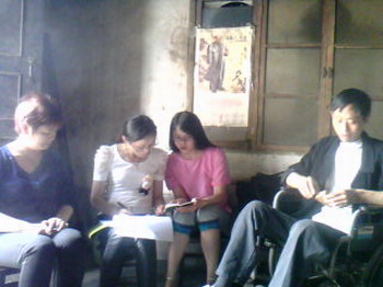 (圖為市殘聯(lián)干部指導(dǎo)溪口鄉(xiāng)殘聯(lián)工作人員制定量服方案)