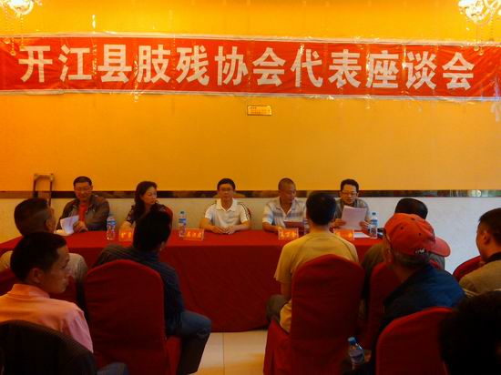 2013年6月6日,開江縣肢殘協(xié)會(huì)在新寧鎮(zhèn)九婆酒家舉辦了“實(shí)現(xiàn)中國(guó)夢(mèng),建設(shè)美麗繁榮和諧四川”暨“學(xué)習(xí)先進(jìn)典型、實(shí)現(xiàn)自主創(chuàng)業(yè)”座談會(huì) 。肢殘人協(xié)會(huì)會(huì)員及來(lái)自各鄉(xiāng)鎮(zhèn)肢殘代表共85人參加了會(huì)議,縣殘聯(lián)黨組成員、機(jī)關(guān)支部書記吳洪君出席會(huì)議并講話。