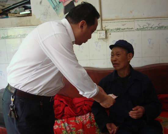 為全面貫徹縣委、縣政府《關(guān)于進一步完善縣級部門聯(lián)系基層制度和深入開展“干部奔跑下基層·爭做人民滿意服務員”活動的通知》文件精神,落實改進工作作風、密切聯(lián)系群眾有關(guān)規(guī)定,進一步加大基層幫扶指導力度,2013年6月7日,宣漢縣殘聯(lián)黨組書記、理事長唐武兵,副理事長林光西,紀檢員祝懷培前往土黃鎮(zhèn)對羅建華、葉發(fā)林、劉明坤、向國清、李宗英、向以勇等6名貧困殘疾人進行了慰問,分別向每個幫扶對象送去了500元慰問金,共計3000元。