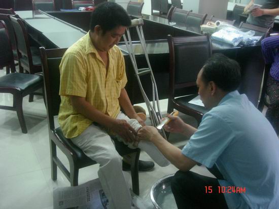 7月15日市殘聯(lián)康復中心副主任甄國忠等一行3人來到通川區(qū)殘聯(lián),開展為下肢殘疾人進行假肢裝配取樣及維護等工作。