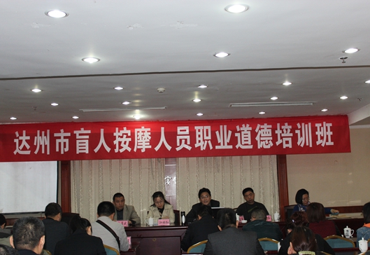 培訓(xùn)班還邀請了達州職業(yè)技術(shù)學(xué)院思政室主任沈吉榮副教授為大家做的“培養(yǎng)提升盲人職業(yè)道德--自尊、自信、自強、自立”的專題講座,并圍繞目前我國有關(guān)行業(yè)規(guī)則、職業(yè)道德、商務(wù)禮儀等方面進行了培訓(xùn)。市盲人協(xié)會主席、高級按摩師劉建華同志結(jié)合當前全市盲人協(xié)會及盲人保健按摩工作實際現(xiàn)狀,對“如何規(guī)范和加強我市盲人保健按摩工作”進行了講授。市殘聯(lián)主任科員王錚錚對盲人醫(yī)療按摩和保健按摩的相關(guān)事項進行了培訓(xùn)。