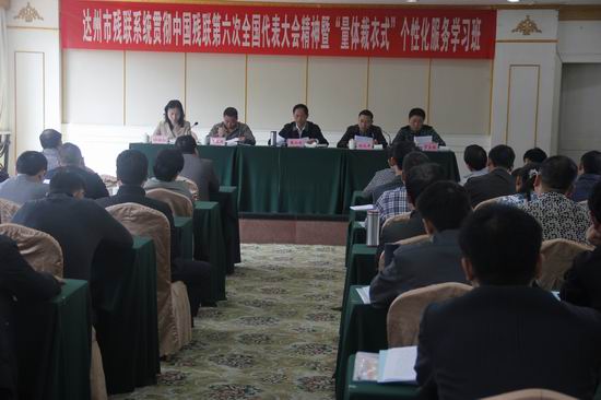 2013年10月24日至26日,達州市殘聯(lián)系統(tǒng)貫徹中國殘聯(lián)第六次全國代表大會精神暨“量體裁衣”式個性化服務(wù)學習班在達州賓館圓滿召開。市殘聯(lián)機關(guān)及直屬單位全體干部職工,各縣(市、區(qū))殘聯(lián)主要領(lǐng)導及班子成員、各股(室)負責人,各專門協(xié)會主席、副主席、委員共120余人參加了培訓。