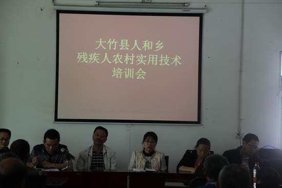 2014年5月7日,大竹縣人和鄉(xiāng)殘疾人農(nóng)村實(shí)用技術(shù)培訓(xùn)班在人和鄉(xiāng)大會(huì)議室拉開了序幕。人和鄉(xiāng)黨委書記吳忠珊、副鄉(xiāng)長(zhǎng)文溯揚(yáng)及縣殘聯(lián)黨組書記理事長(zhǎng)徐仁文、黨組副書記副理事長(zhǎng)馮圣友、黨組成員副理事長(zhǎng)蔣敏參加了此會(huì)。鄉(xiāng)上農(nóng)業(yè)、畜牧方面的專業(yè)技術(shù)人員,重點(diǎn)圍繞“大春育苗技術(shù)”、“無(wú)公害蔬菜肥料使用技術(shù)”、“養(yǎng)雞、養(yǎng)鴨、養(yǎng)豬實(shí)用技術(shù)”等知識(shí)進(jìn)行講解。培訓(xùn)中引用了大量的實(shí)例和數(shù)據(jù)對(duì)比,以多種圖片形勢(shì)幫助殘疾人對(duì)培訓(xùn)內(nèi)容進(jìn)行理解。65名殘疾人參加了培訓(xùn)。