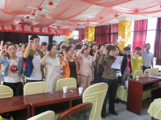 圖:區(qū)殘聯(lián)黨組書記、理事長(zhǎng)劉偉雍同志帶領(lǐng)殘聯(lián)系統(tǒng)進(jìn)行“我要廉”宣誓活動(dòng)。