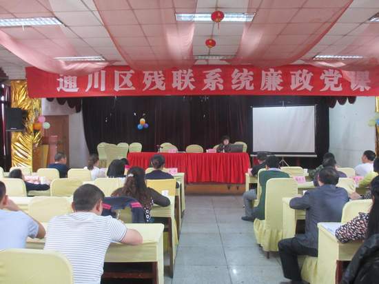 5月8日下午,區(qū)殘聯(lián)黨組書記、理事長(zhǎng)劉偉雍在“通川區(qū)2014年殘疾人量服培訓(xùn)會(huì)”上為全區(qū)23個(gè)鄉(xiāng)鎮(zhèn)辦委及機(jī)關(guān)全體黨員干部職工上了一堂廉政黨課。劉偉雍書記以《堅(jiān)持‘為民、務(wù)實(shí)、清廉’理念,提高做好新形勢(shì)下殘疾人工作的能力》為題,闡述了黨員干部:“要以平凡的心對(duì)待政治、對(duì)待金錢、對(duì)待作風(fēng),要在平凡的崗位上做好平凡的事同時(shí)要盡可能做些不平凡的正確事,履好職盡好責(zé)”。要求殘聯(lián)系統(tǒng)的全體工作者從現(xiàn)在做起,從小事做起,全力踐行黨的全心全意為人民服務(wù)的宗旨,踏踏實(shí)實(shí)、兢兢業(yè)業(yè)、任勞任怨,切實(shí)把為民、務(wù)實(shí)、清廉落實(shí)到每項(xiàng)具體工作中。黨課后,劉書記還帶領(lǐng)全區(qū)殘聯(lián)系統(tǒng)工作人員進(jìn)行了 “我要廉”宣誓活動(dòng)。