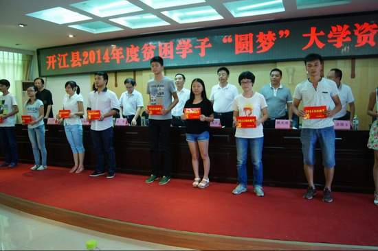 據(jù)統(tǒng)計,全縣今年共有貧困大學生263名,殘疾學生2名(由于以前沒有辦理殘疾證,在這次統(tǒng)計中縣殘聯(lián)還專門為其辦理了證件)、殘疾人子女23名。其中成績優(yōu)異、家境貧困的殘疾人子女梁杰還獲得中央電視臺每年5000元的教育資助?h殘聯(lián)對所受助學生都進行過核實,對符合條件的殘疾學生或殘疾人子女進行2000-3000元金額不等的一次性資助(本科3000元,專科2000元),共發(fā)放資助金6.5萬元?h教育局和縣民政局還專門為所資助的大學生發(fā)放了交通補助(省內(nèi)、重慶500元/人;省外1000元/人。)