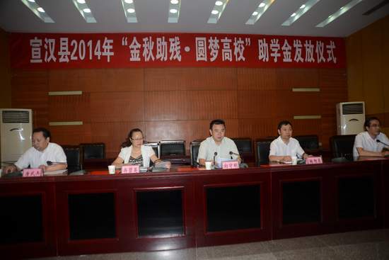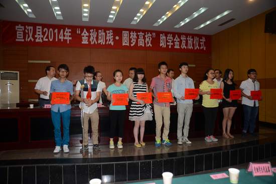 近日,宣漢縣2014年“金秋助殘·圓夢(mèng)高校”助學(xué)金發(fā)放儀式在縣政府大會(huì)議室舉行,縣人大常委會(huì)副主任向守剛,縣政府副縣長(zhǎng)、縣殘工委主任楊旭東,縣政協(xié)副主席冉碧英以及縣政府殘工委成員單位分管領(lǐng)導(dǎo),各鄉(xiāng)鎮(zhèn)殘聯(lián)專(zhuān)職委員和受助學(xué)生代表參加了發(fā)放儀式。