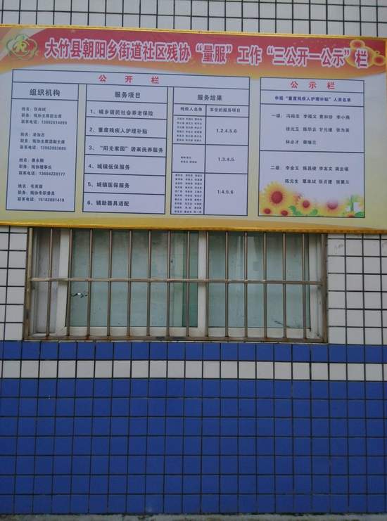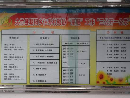 大竹縣朝陽鄉(xiāng)殘聯(lián)認(rèn)真落實(shí)量服“三公開一公示” 制度 |