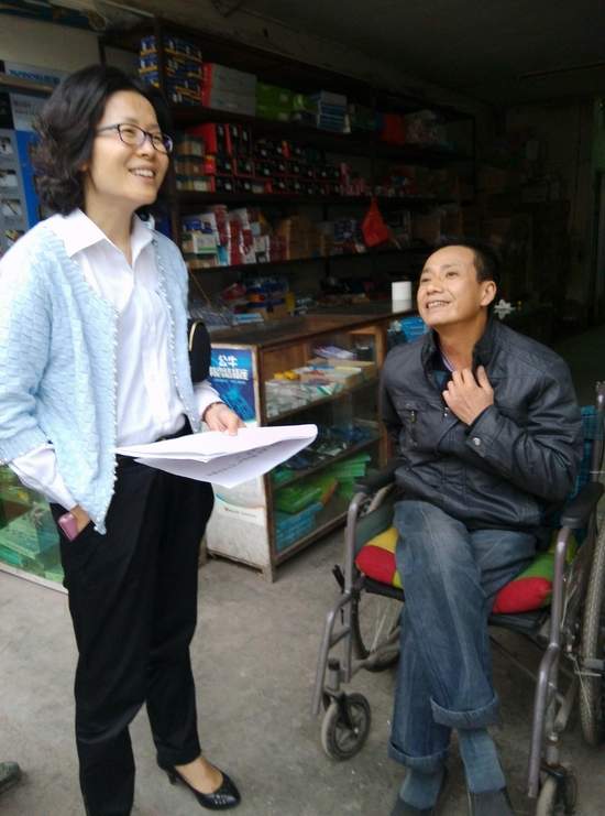 2014年11月4日四川省殘聯(lián)組聯(lián)處處長王志堅(jiān),組聯(lián)處張翅,達(dá)州市殘聯(lián)組宣科科長張文妮,大竹縣殘聯(lián)理事長徐仁文、副理事長馮圣友一行到大竹縣朝陽鄉(xiāng)檢查指導(dǎo)殘疾人“量服”工作;林處長對(duì)朝陽鄉(xiāng)殘聯(lián)和各村(社區(qū))“量服”工作的“三公開一公示”、量服紙質(zhì)的兩表一卡、專職委員對(duì)量服平臺(tái)的操作熟練度和對(duì)量服平臺(tái)的實(shí)際資料都進(jìn)行了認(rèn)真的核實(shí)查看,對(duì)重度殘疾人護(hù)理補(bǔ)貼制度的落實(shí)情況、殘疾人專職委員待遇和基本情況進(jìn)行了詳細(xì)了解,并實(shí)地對(duì)朝陽鄉(xiāng)街道社區(qū)殘疾人李福義、張為英,仙橋村殘疾人陳之雪、何道菊,玉林村殘疾人劉萬林等的“量服”進(jìn)行了現(xiàn)場(chǎng)督查。