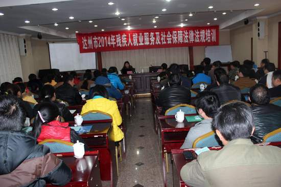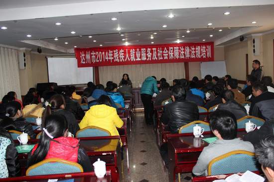 2014年12月12日至14日,達(dá)州市殘疾人就業(yè)服務(wù)部在雙獅賓館舉辦了殘疾人就業(yè)服務(wù)及社會(huì)保障法律法規(guī)培訓(xùn),共有來(lái)自部分市級(jí)按比例安置殘疾人就業(yè)單位人事部門(mén)負(fù)責(zé)人及殘疾人共100余人參加了培訓(xùn)。