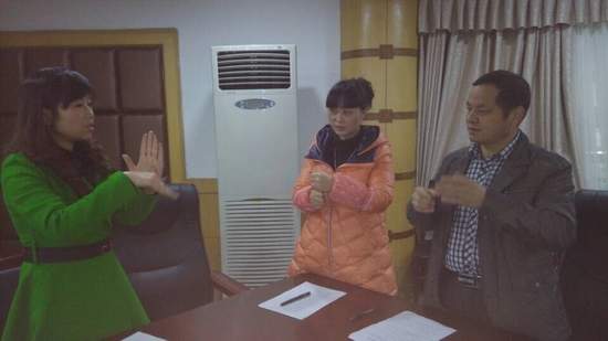 參加本次培訓(xùn)學(xué)員有區(qū)殘聯(lián)黨組書記、王霞和區(qū)殘聯(lián)機關(guān)黨支部書記譚春梅兩名同志。培訓(xùn)內(nèi)容有漢語雙拼音、《中國手語》上下冊和《中國手語日常會話》等,雖然這次培訓(xùn)學(xué)員少,但他們學(xué)習(xí)很認(rèn)真,自覺做到上下午簽到考核。這次培訓(xùn)時間緊,任務(wù)重,學(xué)習(xí)內(nèi)容多,但經(jīng)手語老師的精心教學(xué)和學(xué)員的刻苦學(xué)習(xí),在規(guī)定時間內(nèi)全面完成了教學(xué)內(nèi)容和培訓(xùn)任務(wù)。12月31日,區(qū)人社局、區(qū)殘聯(lián)和達州市特殊教育學(xué)校組成的考核小組對他們進行了嚴(yán)格的筆試和手勢翻譯測試,均取得了優(yōu)異成績,達到了預(yù)期目的,取得了顯著效果。(張淑斌供稿)