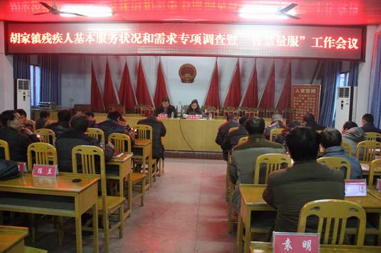胡家鎮(zhèn)為認(rèn)真貫徹落實(shí)國務(wù)院殘工委《關(guān)于開展全國殘疾人基本服務(wù)狀況和需求專項(xiàng)調(diào)查的通知》、川殘工委《關(guān)于做好我省全國殘疾人基本服務(wù)狀況和需求專項(xiàng)調(diào)查的通知》精神及 12月26至27日縣殘工委召開《宣漢縣殘疾人基本服務(wù)狀況和需求專項(xiàng)調(diào)查暨“智慧量服”工作》會議要求。通過拉橫幅標(biāo)語,在中心廣場通過LED大屏幕上發(fā)布“全國人殘疾人基本服務(wù)狀況和需求專項(xiàng)調(diào)查公告”,鎮(zhèn)政府發(fā)文件,召開會議等多種形式進(jìn)行宣傳。1月5日上午,胡家鎮(zhèn)召開殘疾人基本服務(wù)狀況和需求專項(xiàng)調(diào)查暨“智慧量服”工作會議,鎮(zhèn)長、分管領(lǐng)導(dǎo)、鎮(zhèn)專項(xiàng)調(diào)查員、各村、社區(qū)書記和文書等30余人參加會議。