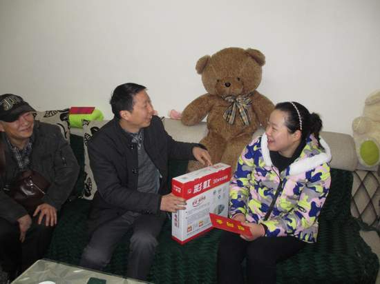 何冰常委首先來到居住在涼水井徐公祠巷的翠屏路社區(qū)殘疾人賀進(jìn)家看望慰問。賀進(jìn)是一個一級聽力言語殘疾人,不能同健全人進(jìn)行正常的語言交流,只能通過手勢和觀察口形進(jìn)行簡單的交流。何常委用簡單的手勢親切同賀進(jìn)交流,在同其父親交談中得知賀進(jìn)一家4口人,夫妻二人均無職業(yè),生活來源靠丈夫長期在外打臨工和時常依靠父母接濟(jì)維持。何常委親手將500元慰問金和一床電熱毯送到賀進(jìn)的手中,并祝愿他們一家過一個祥和的春節(jié)。同時叮囑辦事處和社區(qū)要對重度殘疾人家庭給予更大的關(guān)心和幫助,為他們解決生活上的實際困難,使他們能夠樹立生活的信心。