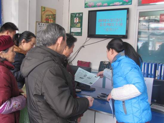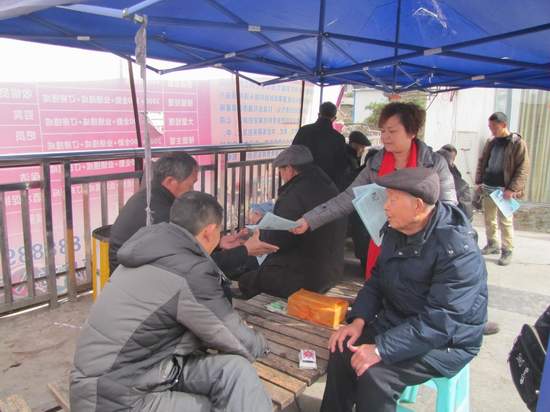(圖為工作人員向老年朋友發(fā)放宣傳資料)