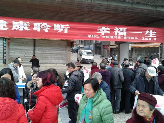 2015年3月3日是第16次全國“愛耳日”,活動主題是“安全用耳,保護(hù)聽力”。3月3日上午,通川區(qū)在西城紅旗路社區(qū)濱河路段開展了“愛耳日”宣傳活動。區(qū)殘聯(lián)、區(qū)科協(xié)、西城辦事處、市康復(fù)中心、市聾兒語訓(xùn)部、通川區(qū)紅十字醫(yī)院等單位參加宣傳活動。