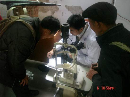 圖為:博視眼科醫(yī)院醫(yī)生在碑廟鎮(zhèn)為患者進(jìn)行檢查