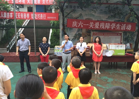 6月1日上午,渠縣縣委常委、總工會主席劉江帶領(lǐng)縣殘聯(lián)、縣教科局、團(tuán)縣委、縣婦聯(lián)等部門負(fù)責(zé)人,帶著節(jié)日的問候與祝福,來到渠縣特殊教育學(xué)?赐⑽繂柫嗽谛5100余名師生。