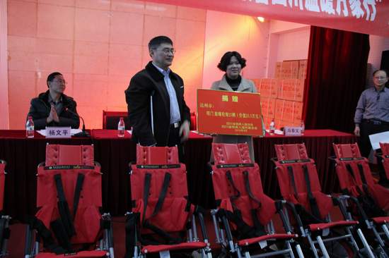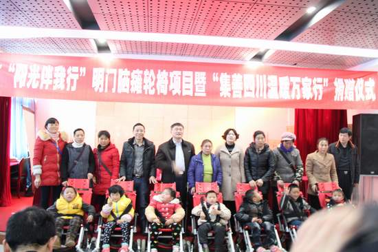 (據(jù)2015年1月23日《華西都市報》消息 記者:張驥)2015年1月22日,達州市“陽光伴我行”明門腦癱輪椅項目暨“集善四川·溫暖萬家行”捐贈儀式在達州市社會福利院多功能廳舉行。當天上午,四川省殘聯(lián)巡視員、省基金會理事長丁二中,省基金會辦公室主任王偉,市殘聯(lián)黨組書記趙本權,副理事長楊文平,康復科科長馮春義,市康復中心主任甄國中出席捐贈儀式,向25名貧困家庭腦癱兒童捐贈幼兒便攜式輪椅,向縣(市、區(qū))捐贈貧困殘疾人越冬慰問物資一批。