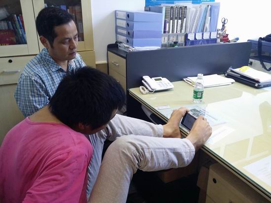 王書記一行來(lái)到銀河職業(yè)技術(shù)學(xué)校詳細(xì)了解了劉鋼的情況后,他的自信、自強(qiáng)和張校長(zhǎng)的愛(ài)心助殘精神十分感動(dòng)。王書記與劉鋼零距離的交流、溝通,劉鋼也當(dāng)場(chǎng)用雙腳趾在手機(jī)上打字演示,向在場(chǎng)人證明他一定能夠?qū)W會(huì)電腦操作,一定會(huì)學(xué)好網(wǎng)頁(yè)制作,實(shí)現(xiàn)自己開網(wǎng)店夢(mèng)想。