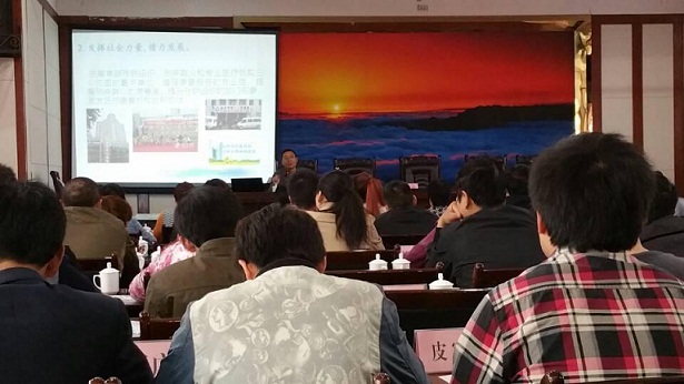 (圖1:市殘聯(lián)理事長趙本權(quán)在宣漢培訓(xùn)班上講話)