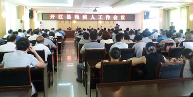 2015年6月19日下午,“開江縣殘疾人工作會議”在縣教科局九樓會議室隆重召開?h委書記羅建,縣委常委、組織部長陳杰勇,縣人大常委會副主任陳文斌,縣政府副縣長漆楚文,縣政協(xié)副主席楊元輝出席會議。各鄉(xiāng)鎮(zhèn)黨委書記、分管領(lǐng)導(dǎo)、殘疾人專職委員參加會議?h殘聯(lián)全體職工、各專門協(xié)會主席列席會議。會議由陳杰勇同志主持。
