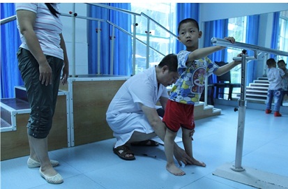 圖片二:市康復(fù)中心的矯形器師對在訓(xùn)腦癱兒童認(rèn)真進(jìn)行適配評估