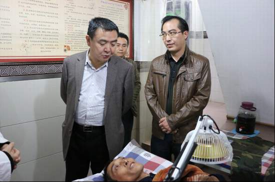 向守剛副主任(左一)檢查縣殘聯(lián)康復(fù)診所并看望前來康復(fù)理療的殘疾人