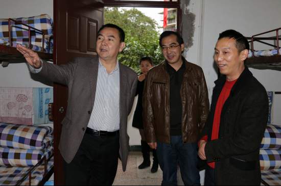 向守剛副主任(左一)檢查縣特殊學(xué)校并查看學(xué)生宿舍