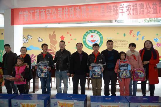 冷冽寒冬,止不住愛心人士的腳步。12月8日,廣安匯通商貿(mào)公司職工走進開江縣特殊教育學校,開展扶殘助殘愛心捐贈活動,讓全校殘障學生內(nèi)心充滿了濃濃的暖意。捐贈活動由縣委宣傳部副部長、縣委報道組組長王萬斌主持?h教育局、縣殘聯(lián)出席了會議。