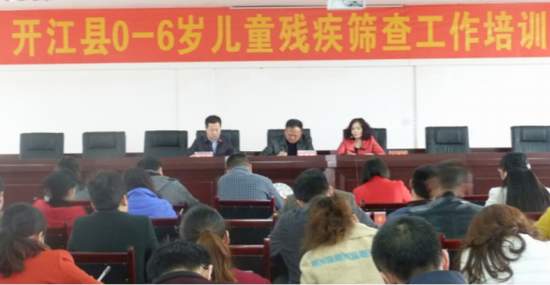 為貫徹落實(shí)四川省0-6歲兒童殘疾篩查工作培訓(xùn)會(huì)議精神,按照《達(dá)州市殘疾人聯(lián)合會(huì)、達(dá)州市衛(wèi)生和計(jì)劃生育委員會(huì)關(guān)于加強(qiáng)0-6歲兒童殘疾篩查工作的通知》(達(dá)市殘聯(lián)【2015】43號(hào))文件要求。3月15日,開(kāi)江縣殘聯(lián)積極主動(dòng)與開(kāi)江縣衛(wèi)生和計(jì)劃生育局對(duì)接,在縣中醫(yī)院九樓會(huì)議室啟動(dòng)了我縣2016年0-6歲兒童殘疾篩查工作培訓(xùn)班,參加培訓(xùn)人員有各鄉(xiāng)鎮(zhèn)殘聯(lián)專職委員、各鄉(xiāng)鎮(zhèn)(中心)衛(wèi)生院、社區(qū)衛(wèi)生服務(wù)中心分管領(lǐng)導(dǎo),負(fù)責(zé)篩查工作的經(jīng)辦人員,共80余人參加了此次培訓(xùn)。