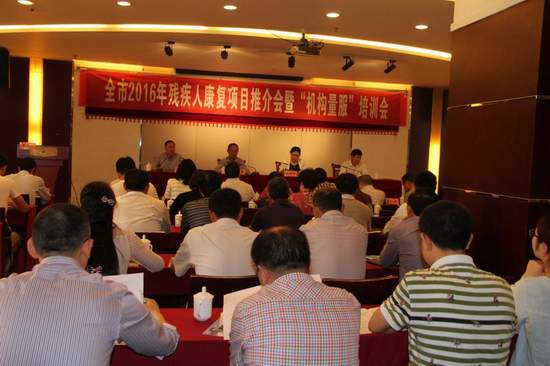 2016年5月4日,市殘聯(lián)在高望都賓館召開(kāi)了全市2016年殘疾人康復(fù)項(xiàng)目推介會(huì)暨“機(jī)構(gòu)量服”培訓(xùn)會(huì)議,各縣(市、區(qū))殘聯(lián)理事長(zhǎng)、分管康復(fù)工作的副理事長(zhǎng)、康復(fù)股長(zhǎng)和康復(fù)骨干參加了培訓(xùn)會(huì)議。會(huì)議特邀省、市、縣及重慶等地44家醫(yī)療康復(fù)機(jī)構(gòu)負(fù)責(zé)人出席會(huì)議。市政府副秘書(shū)長(zhǎng)嚴(yán)洪波同志蒞臨會(huì)議并致辭,市殘聯(lián)黨組書(shū)記、理事長(zhǎng)趙本權(quán)出席會(huì)議并作了重要講話,市殘聯(lián)黨組成員、副理事長(zhǎng)楊文平主持了會(huì)議。