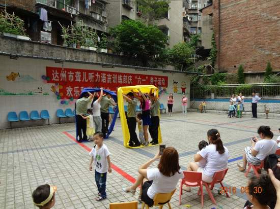 2016年5月30日,值此“六一”國際兒童節(jié)即將到來之際,為了使每一位聽障兒童都能沐浴愛的陽光,享受愛的溫暖。達州市聾兒語訓部開展了一場“歡樂和諧慶六一 激情飛揚獻愛心”為主題的親子活動。參加活動的小朋友是語訓部在訓佩戴助聽器和植入人工耳蝸術后康復的聽障兒童、他們的家長、語訓部的老師,以及來自于達州市礦山救援隊青年志愿者、四川文理學院大學生志愿者們。