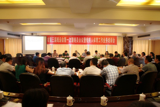 會上,淳偉波副縣長代表大竹縣人民政府致辭,第三屆殘運會項目負責人解讀了《達州市第三屆殘疾人運動會競賽規(guī)程總則》、《達州市第三屆殘疾人運動會各單項競賽規(guī)程》,分別就第三屆殘運會選材備訓和競賽工作進行了現(xiàn)場解答,市文體廣新局社體科科長黃繼文就競賽準備工作做了安排,市殘聯(lián)組宣科科長張文妮就第三屆殘運會運動員醫(yī)學分級及資格認證等工作提出了要求。市殘聯(lián)理事長趙本權做了總結講話,她要求各縣(市、區(qū))殘聯(lián)要統(tǒng)一認識,明確目標;選好苗子,強化訓練;把握機遇,搭好平臺;激勵引導,增強活力;嚴肅紀律,賽出風格。把本屆殘疾人運動會辦成一屆節(jié)儉、精彩、成功、有序的殘疾人運動會。
