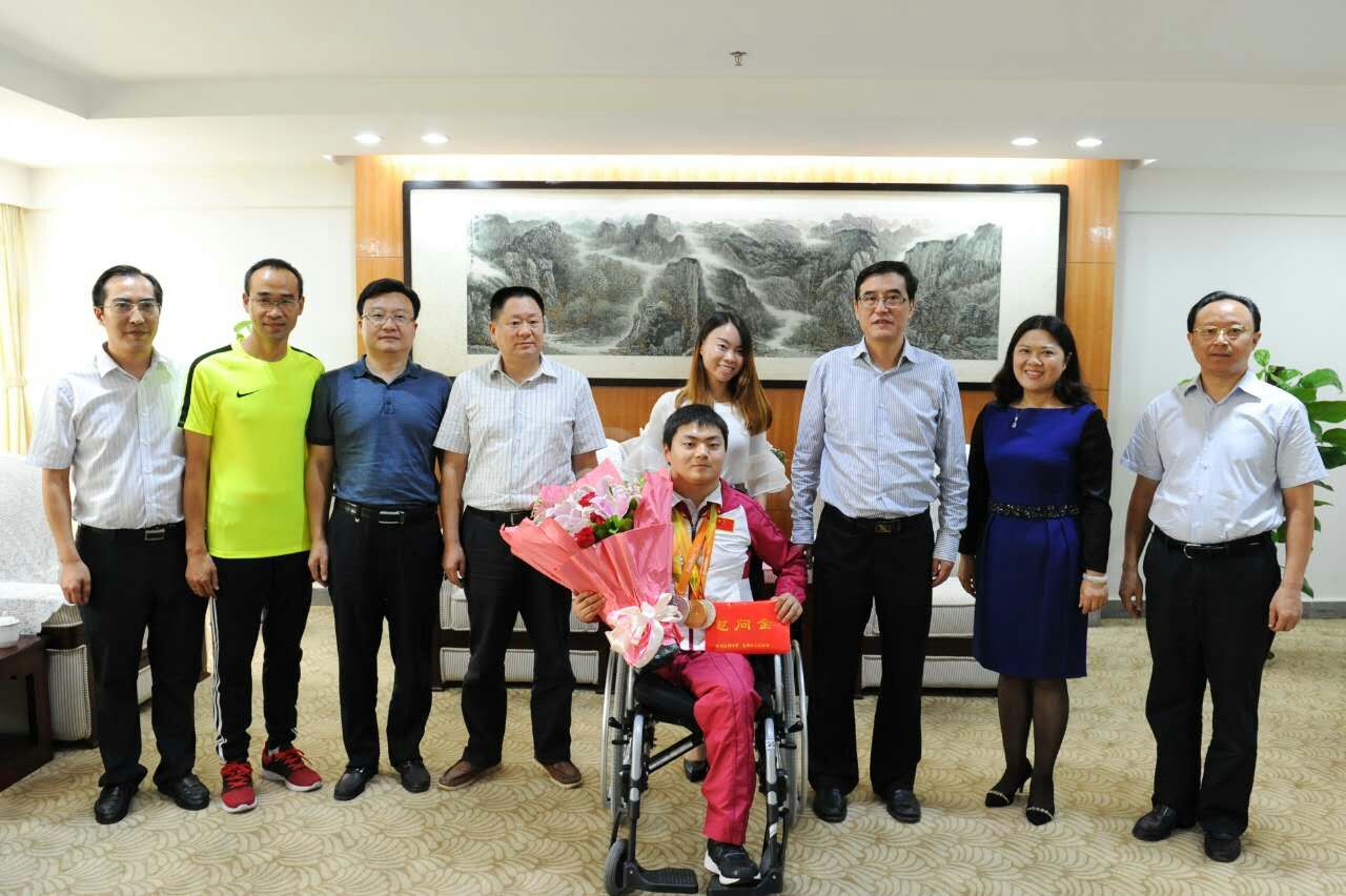 達(dá)州日報訊 9月23日下午,市委副書記、市長郭亨孝親切接見了從里約載譽歸來的殘奧會冠軍劉本英。市委常委、市總工會主席陳中華一同接見。