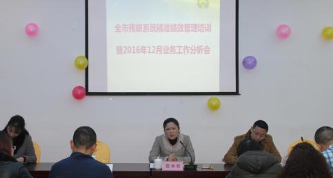 12月9日上午,達(dá)州市殘聯(lián)在國(guó)糧酒店14樓會(huì)議室召開了全市殘聯(lián)系統(tǒng)精準(zhǔn)績(jī)效管理培訓(xùn)暨2016年12月業(yè)務(wù)工作分析會(huì)。市殘聯(lián)黨組、理事會(huì)班子成員、機(jī)關(guān)全體工作人員及各直屬單位負(fù)責(zé)人,市級(jí)定點(diǎn)醫(yī)療康復(fù)機(jī)構(gòu)“量服”工作人員,各縣(市、區(qū))殘聯(lián)主要負(fù)責(zé)人及業(yè)務(wù)股(室)負(fù)責(zé)人參加了會(huì)議。