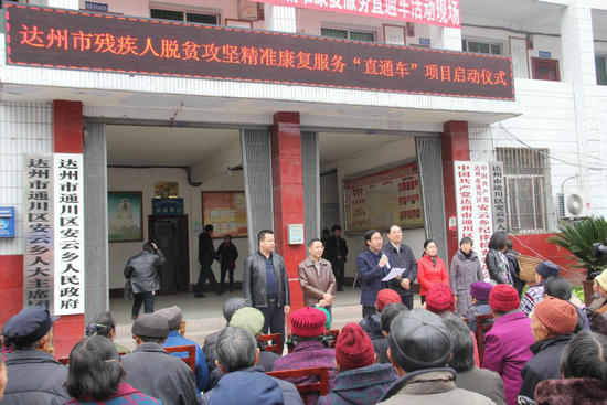 3月23日上午,2017年達(dá)州市殘疾人脫貧攻堅(jiān)精準(zhǔn)康復(fù)服務(wù)“直通車”暨“沙軒·愛(ài)爾光明行”公益項(xiàng)目在通川區(qū)安云鄉(xiāng)隆重啟動(dòng)。市委常委、統(tǒng)戰(zhàn)部部長(zhǎng)、總工會(huì)主席洪繼誠(chéng),市殘聯(lián)黨組書記、理事長(zhǎng)趙本權(quán),通川區(qū)委常委、總工會(huì)主席劉江,市殘聯(lián)黨組成員、副理事長(zhǎng)楊文平,通川區(qū)殘聯(lián)黨組書記、理事長(zhǎng)劉偉雍,通川區(qū)安云鄉(xiāng)黨委書記肖曉宏,達(dá)州沙軒國(guó)際美容會(huì)所董事長(zhǎng)楊曉雪等出席了啟動(dòng)儀式。