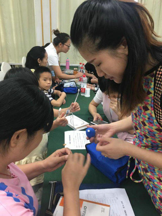 圖3:專家指導(dǎo)家長(zhǎng)使用保養(yǎng)人工耳蝸。